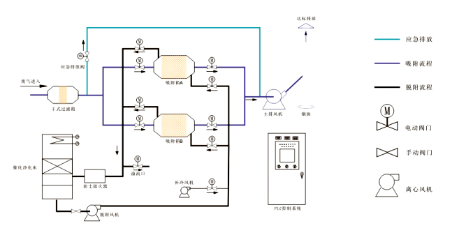 *該設(shè)備采用吸附濃縮+催化凈化組合工藝,整個(gè)系統(tǒng)實(shí)現(xiàn)了凈化、活性碳脫附再生、PLC自動(dòng)控制,與其它有機(jī)物吸附塔相比,無(wú)須壓縮空氣,水源、蒸汽及更換活性炭費(fèi)用,大大降低運(yùn)行成本,且設(shè)備運(yùn)行中無(wú)二次污染產(chǎn)生。